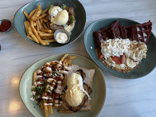 First time here, got the Pork Belly Bennie, Miso Maple Bacon Bennie, and Red Velvet Waffles.