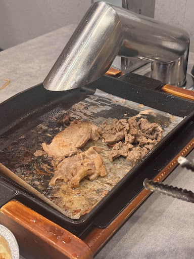 Half of our grill wasn’t frying the meat properly, but it was hard to tell whether it was broken or if the grill just wasn’t doing a great job because in general it took a very long time for our meat to cook and it was not crisping up, likely because of the parchment paper that they put on the pan. A lot of our meat was boiling before it finally got crispy but it took maybe 10-15 minutes to just cook a few slices of meat and to get it to the right texture. I think the grill heavily contributed to the taste and texture of our meat. Everything just felt very underwhelming, especially considering the price being $40 (in this case, we went during their 15% discount and even then I was underwhelmed.)