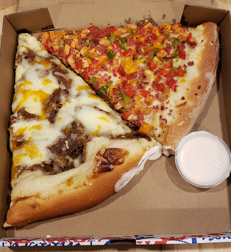 First off, I'm looking at this from a "pizza by the slice" angle exclusively because I feel there are much better pizzas out there around Calgary but few offer an affordable, late-night, monster-sized slice option.