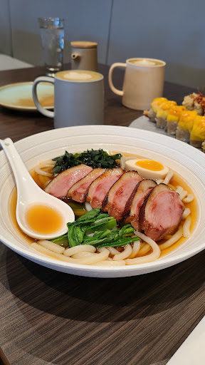 I got the duck breast udon and presentsiton was 10/10, when they put it on the table I thought it was a dish straight out of a Studio Ghibli movie!! Taste was also amazing, they didn't cheap out on the duck at all. It was juicy and moist, but taste wise, rather than tasting duck it tasted like I was eating honeyed ham (it's weird for me to explain but regardless it was still good!). The hamachi tempura sushi was also really good! I think I still prefer raw hamachi over a cooked hamachi in tempura but it was something unique on their menu, among their other unique rolls that you won't find anywhere else.