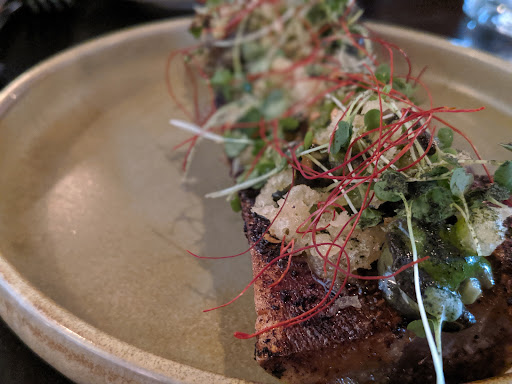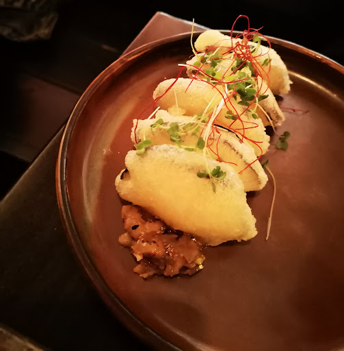 We ordered several things, in general I was impressed that they brought things out gradually rather than all at once, which is what works best at this kind of place. We did have a few minutes where we had nothing coming and weren't sure if they had forgotten two of our dishes, but they did show up after a while. I wasn't hugely impressed with our original server, she seemed very unclear on what we wanted. I twice told her that I didn't want to order the fish tartare until I knew what it was, but she put it on our order anyway. It was good but I would have still liked to know ahead of time!