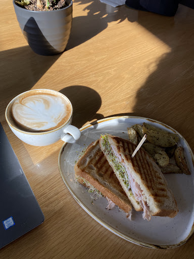 Read moreMy good friend lives in the area so we agreed to meet up there for a visit. Now, I was coming from eating a rather unsatisfying meal so I was kinda full. I wasn't going to get anything but I was thirsty. So I asked the young guy behind the counter what he would suggest. He gave lots of good suggestions. He was very patient with me as I decided on the Chai Latte. I had never ordered this before and I was very satisfied with my choice. It was very thirst quenching! A delightful cold drink. I will definitely order it again. When my friend arrived, she decided on a sandwich. When it arrived, we both commented on how great it looked. It looked so fresh and appetizing. Well, she said it was a delish as it looked. And, man, did it look tasty! While we continued with our visit, the young man came out and chatted with us as he cleared out table. My girlfriend had her very awesome Labradoodle with her. The guy asked if he could bring out some treats for her. Needless to say, he found a permanent and lifelong friend. It was so kind of him. He also said he was going to put the water bowl out. It was so relaxing to sit in the sun in April visiting with my friend and her dog. I would give Sierra Cafe an extra star for being pet friendly if I could. I met several nice dogs that day. Next time, I will bring my Stella. We will definitely make this a spot to meet up for a coffee. Good food, Good drinks, Good people and some...