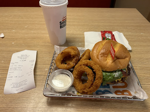Read moreIm depressed.. this used to be our favorite spot for a good burger. First - they no longer have malt for milkshakes (yes that was awhile ago but i never wrote my displeasure!) - then we went for lunch today and ordered.. went to find a booth (we were only people there at noon!) And every single booth seat was dirty except one - and that one had a dirty table! When i asked for a rag to wipe it the young man was kind enough to go and clean it and explained it was busy last night. Like this is a good reason why they r not ready for lunchtime next day? Our response someone should be fired. Our burger then arrived to which i was perplexed that the patty was so small and thin compared to yrs before. The young man again advised they reduced patty to fit on bun better lol. It is now a 4 oz burger. I can get a 4oz burger for half that price elsewhere. Smashburger u no longer stand out in the crowd of burgerdom.. although u do stand out for a dirty dining area.. even the floors needed help from night before. You got one star for that nice young man and one star that the smash fries are still good even though the size were also reduced on these. Our quest for amazing burger...
