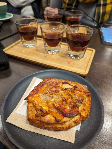 Read moreStopped by here for an early morning coffee while trying to experience as much of Calgary as we can during our short stay and my friends and I were very happy with everything. Not sure how busy this place gets during the week. But on Saturday at 745 we were the only 4 people in there. It was different than any coffee place any of us had ever been to, they've got a bunch of different coffees to choose from by the bag and you just tell them what you want a pour over of. OR two for us did a flight of three coffees the same way, and there was a QR code that takes you to the tasting notes for each. The coffees were very tea like in nature but in a good way, that's the way it was supposed to be. So many different flavors. And I've always heard coffee has more flavor notes than wine and this proved it for me. I also got a kimchi sausage Danish. It was all good and the service was phenomenal. They were all super helpful for this very different, very good experience. 2 friends got lattes with different coffees and it was amazing how different they tasted. I highly recommend this place and I am sad my friends want to try more places during our stay because there is so much more here I want to try. But I am also excited to try more places Calgary...