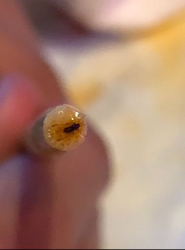 HOWEVER, when i was eating, let me tell you my eye sight is really good, and im sensitive when it comes to things that are in my food where it’s not supposed to be. i found a BUG. it’s really tiny so at first i thought it was the black sesame seed, however when i placed it on the tip of my chopstick and took a clear picture for proof, i realized it was a bug.
