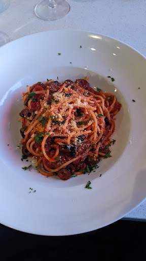 Food: we tired the calamari, pescatore, and carbonara. Calamari was lightly bathered, deep fried in clean oil, basic tomato sauce was perfectly complimentary. Carbonara was also tasty, guanciale is also a nice touch, but if it was cooked in the sauce longer, it would have made the sauce stand out even more on its own. The pescatore was also excellent, but there was a bit of sand/grit on about 1/3 of the muscles. That said, the flavour on everything was excellent, and very nicely cooked and presented. Pasta appears to be homemade. They also have their own wine, which is pretty neat.
