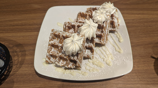 I NEVER leave reviews. But considering what happened and how it was resolved. Well here it is. This was not a pleasant experience. Went here with my mum this morning for a little girls breakfast before our day. Going out to eat is a rare treat for us and we wanted to try a new place. At first glance we were super happy with the friendly staff and the look of our food and the environment. However things took a turn….we ordered a waffle meal and a pancake meal. And about halfway into our meals my mum had to spit out her food as there was a FULL long black hair cooked into her waffle. Not even on top like it could be possibly explained away like it fell off in transport or some ridiculous thing but IT WAS COOKED INTO THE BATTER. Disgusting. She obviously couldn’t finish her meal and I almost hurled right there at the table.