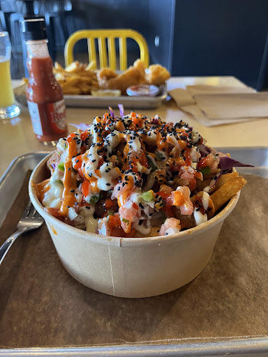 While the food quality is quite good, there’s very little value for the price. Everything is expensive and overpriced for the amount of food you get. Don’t expect to be full unless you’re paying $20+. The shrimp bowl for $17 comes with 4 shrimp; and it’s an extra $4 to get 3 more. The smash burger is so small compared with the picture that you could actually consider it false advertising. They dice up their cheese curds for the poutine so you get these small, unsatisfying pieces and you really feel like you’re eating fries and gravy rather than a poutine. The fish is very good, but even with their “fish Tuesday” special pricing it’s still expensive, and they are very stingy on the tartar sauce. They give you 1 for every 2 pieces of fish which is barely adequate. If you ask for more they will charge you; all of their dips and sauces are $1 each, a huge pet peeve of mine.