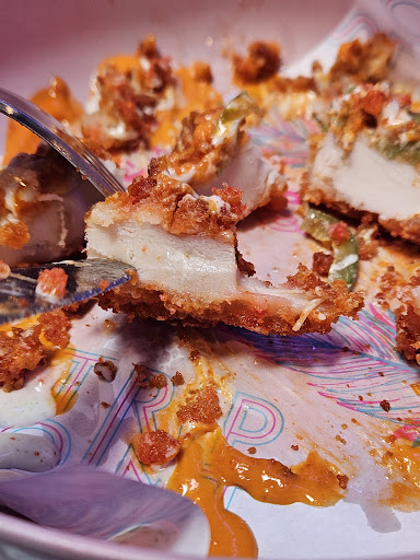 Read moreMy niece came in from outta town and we like to take her to local cool places. My daughter had suggested the Strip Joint on numerous occasions and for whatever reason we never have made it here. But Sunday was the day! We met down there at 6 and to my surprize, it was not silly busy. There were some folks there but lots of open tables too. We grabbed one and looked at the menu on the board. We had perused the menu before we came here. It is a good idea. We spent lots of time looking and drooling. Kelly grabbed the fries and a hot honey dipped slider. Kimberly and I split the Peanuts Be Jelly & the Tso Good. We also split the chili roasted cauliflower. We got three dunks: hot honey, dill pickle back ranch & another one? Obviously, the dill and the honey were the best. Kelly raved about her slider. There was nothing that would have made it better she said. Her fries were so incredibly hot & crispy. They were the best fries I have ever had and I had LOTS because they were so good. So good. The chicken strips we got were insane. They were SO GOOD! OMG! I cannot choose which one was better because they were both so good. I love a good crunch but this was Capt. Crunch crunch!! Wow!! But the sauces took it over the top. These were the moistest, juiciest, crunchiest, tastiest chicken strips I have ever had the pleasure to taste. I have been missing out. But no longer!! I...