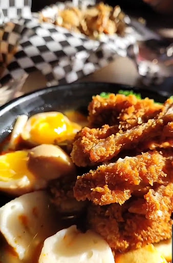 The food/meals were very mediocre though. Frozen vegetables that still had tastes of frozen veggies. The HK style rice noodles were not so great but I suppose hits the spot. It was drowning in truly salty/dark soy sauce at the bottom without the proper balance of peanut butter sauce and hoisin sauce. The rolls felt reheated in a microwave and stuck together as one a lot. The mini one person hot pot is very gimmicky - careful bc that paper bowl can burn/light in flames. The service to help us out with changing out the bowls and more broth was very good. But the overall single hot pot in a small bowl was very hard to cook and eat properly. The curry for the cutlet was chunky and probably wasn't heated up properly for it to unclump into a more liquid curry style.