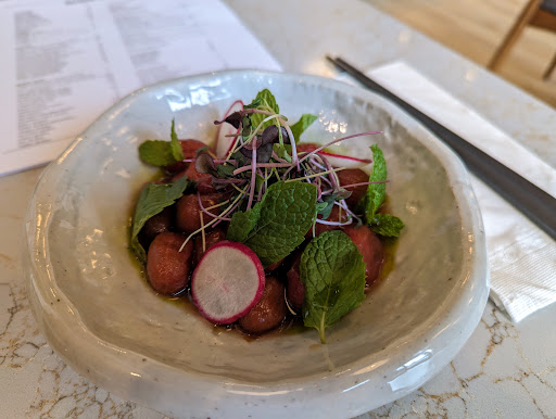 Read moreJust a fantastic experience all around. I had lunch here today (Sunday, 5 November) and was sadly the only customer- I hope word gets out that Sora is open for lunch every day (except for Tuesdays, when the restaurant is closed), because this place deserves as much business as possible. The place is beautifully renovated, all light and bright with superb jazz on the sound system. Prices are reasonable! I got the "tasty tomato" salad, two each scallop, unagi and inari nigiri, and the saba oshizushi. The salad came first and it comprises grape tomatoes that are peeled! I've never seen grape tomatoes with the skins removed- it's a delightful thing and demonstrates deft care in the kitchen. The nigiri came next and was excellent; every one with a little lagniappe that made it special and memorable; for example, the scallop had a little dollop of caviar on each piece. This is also the first sushiya I've encountered in Calgary that gives real wasabi FOR FREE. I've seen this as an option elsewhere that costs extra, but at Sora, it's gratis. Almost every sushi place on earth uses an imitation from a reconstituted powder that's basically horseradish. Not Sora, which also brews its own soy sauce!