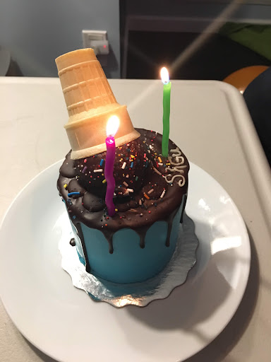 A friend picked up the cake on my behalf and she noticed that it had fondant on it. They even tried to "correct" it. But it's still fondant and my wife does not like fondant so thanks for ruining that. Second I specifically asked for the ice cream cone dripping, I got the ice cream cup dripping. When my friend pointed that to them, the person behind the counter said, you need to be specific that you need a pointy cone on your cake. I was not amused, isn't that the definition of a cone? That a cone is a 3d triangular structure. It is supposed to be pointy?