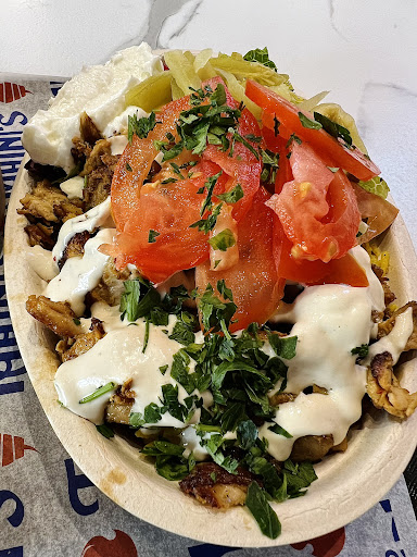 We tried the jerk chicken shawarma (large one is huge!!) and the chicken Habibi bowl (regular size is the large size and it's a big portion too). Both were really good, flavorful and fresh. Prices are reasonable for the portions you get. I have to say though...I am a huge fan of traditional Caribbean style jerk chicken and was hesitant ordering it from a Mediterranean place...Their jerk chicken does not taste like authentic jerk chicken to me but it was still flavorful and still tasted good (I didn't find it that spicy either). The fries are just okay, probably wouldn't get them again. The beef samosas were really good but barely had any meat inside them, I like how they use phyllo pastry vs the thick dough.