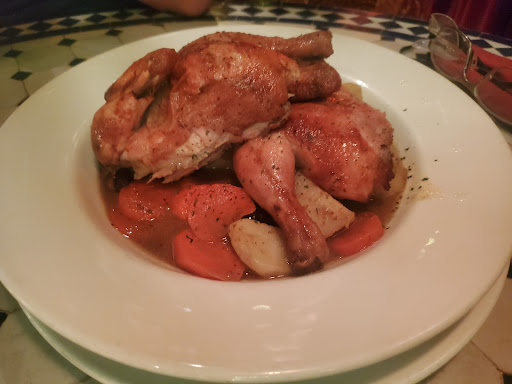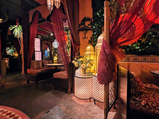I am usually guarded when visiting places like this, where the decor etc are beautiful but more of a reason to go there (ie instagram) than the food... But I can tell you, the food was incredible and authentic. The figs and lamb and a mix of savory and sweet in some of their dishes. We had a Taste of Morocco 4 course meal, and we were full. Lots of great meats and vegetables. The Fez Tajine had big chunks of vegetables and the chicken in that was marinated and grilled to perfection. We also had the Couscous Sahara with lamb and wow that was an incredible dish. My spouse who is not usually a lamb fan was raving about it. The lamb was literally falling apart the moment the knife touched it. The couscous was unlike any I have ever eaten, so so good. Finally the desert was a nice surprise. A 'deconstructed' baklava type desert with ice cream and strawberry/raspberry puree and chocolate sauce. What a way to finish off with a bang.