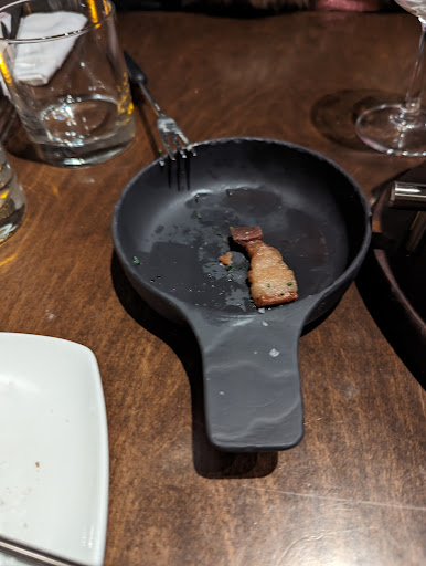 The pork belly and beef tenderloin were nice, with the tenderloin easily being the better of the two. The problem being that you pay for the meat separately, and as such would expect them to come in separated portions. This was not the case and the pork and beef came out in the same container which, like the beverages, was absolutely pitiful in its proportions for the price. Also the absurd ratio of meat vs cheese in the fondue most likely results in the restaurant having a ton of cheese left over as food waste, unless they are recycling their cheese between guests which would also be absurd.