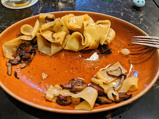 The coq au vin was a disappointment. For a dish called "chicken with wine", it had very little chicken, only 2 bite sized morsels in the whole dish. The papparedelle was a touch undercooked with a couple bites bordering on raw where the pasta had clumped together, and the whole dish was swimming in oil. On a positive note, it did have a generous amount of beautifully caramelized mushrooms and bacon.