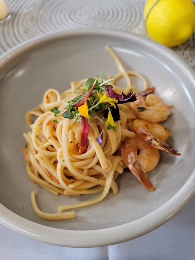 It started at 6pm with a lounge, drinks, appetizers, and piano music. Then at 7 moved to an individual table fashion (I hear all nights are different) with 5 sectioned meals. Charcuterie board (SO MUCH FOOD) Shrimp and tomato pasta (would have liked more sauce with the pasta) Lemon and blueberry Gelato (tasted like frozen lemonade) A fish in bread for what I could describe looked originally like a calzone, with a small olive and orange salad (wasn't too into the fish, I quite enjoyed the flavour profile of the salad) Tiramisu with some fruit and chocolate. (Pretty standard).