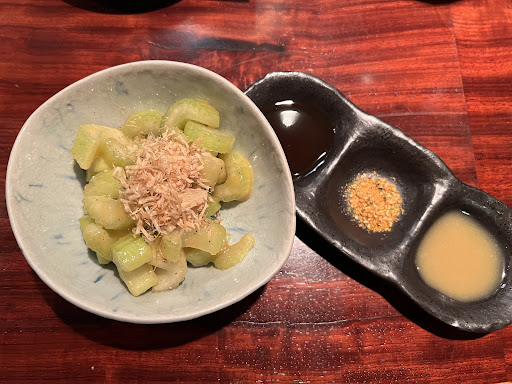 Read moreThis cute little hidden gem is easily my favorite restaurant in Calgary. I was warmly welcomed despite showing up an hour to close with no reservations. The restaurant is small and cozy, with rich furnishings. These hard-working owners create absolutely magic with their grilled skewers. I tried many of them, from the beef rib to the chicken drum. They have mastered the art of grilling and know exactly how much to season, and how much to grill to get a slightly crispy exterior and moist flavorful interior. I also ordered the miso celery which was such a unique, delicious way to serve it. It’s a very unique dish, I highly recommend trying it. The owner walked around repeatedly ensuring patrons were happy and got whatever they needed from more food to drinks. The service itself was well-paced so they kept a steady stream of food coming with small breaks in between. I never felt rushed or had to wait too long for the next item. Overall, this is a terrific restaurant with loads of character and...