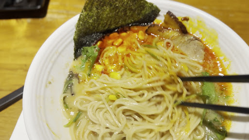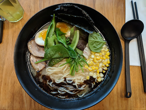 Read moreFirst experience at Wakado and it was a mixed one for sure. Arrived at 11:40am, ordered two bowls of ramen (the one pictures is the Tonkotsu Black btw) and two charsui buns at 11:45am. There was another couple sitting next to us that ordered right after us. Our ramen arrived at 12:00pm, but the couple next to us didn't get their ramen until 12:15pm (30 minutes?!). Broth was flavorful and the noodles were firm and chewy. They are straight and smooth compared to other shops that are more rounded/wavy. My Tonkotsu Black had garlic oil (the black part), but after mixing, it wasn't very garlicky at all.