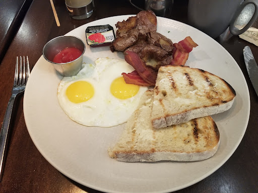 We also had the pancakes and the syrup was very watery. Seemed like brown sugar and water. We live in land maple syrup yet we get this diy sugar water.