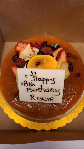 For starters, the cake tasted amazing. I asked my friend who visited Japan if it tasted like the real deal, she said it tasted exactly like what she had in Japan. The cake was decorated with beautifully cut fruit. It had a mango slice, strawberry flowers, blueberries, pomegranate seeds and other fruits with a little piece of chocolate saying "happy 18th birthday Reeve." It was perfect, better than anything I could've asked for honestly. There was a wide variety of other Japanese-style goods, such as Hello Kitty cookies styled like Dango 🍡, so there were plain cookies, some with red food coloring and some with matcha. There were butterfly cookies, sesame seed rolls, an insane looking mango cake that I wanted to eat, and a bunch of cake slices to choose from for every kind of person.