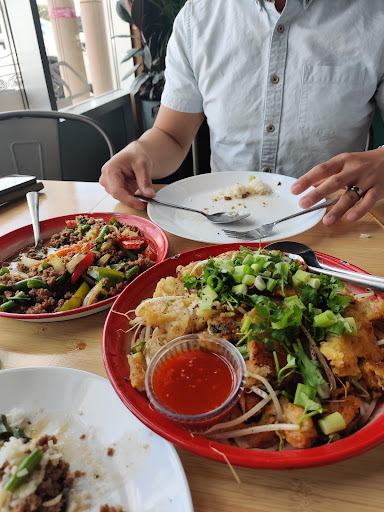 Most authentic street Thai food you can find in the city. It will bring you back to Bangkok! I am Thai and have been living in Canada for over 20 years. I never go to Thai restaurants because most of the menus are westernized and they just don't satisfy my cravings the same way. I'd rather cook Thai food at home in order to get the right homey flavours. But now, this place is a game changer! I've been waiting for someone to bring Thai Street Food to mainstream! They have all the classic dishes that local Thai people would eat on a daily basis! Many of their menus you won't find in your typical Thai restaurants. If you truly want to experience the true flavours then this is the place to check out. Warning: true Thai flavour is spicy, so expect things to be spicier than what you're used to. Thai food tastes better spicy! The portions are big and most of the dishes are meant to eat as family style. I spoke with the owner and he said his mom is the chef, which explains the homey taste. I love it! Brings me back to my childhood in Thailand! This will be my new go to place for my Thai craving. For this trip we ordered mussel pancake (my childhood favorite), basil and pork (every thai person favourite) and bbq pork skewer (most popular Thai street food). The portions were more than enough for two. We brought half of the portions home for another meal. PS. I also love that they use vintage Thai plates that every old Thai home would have as serving dishes....
