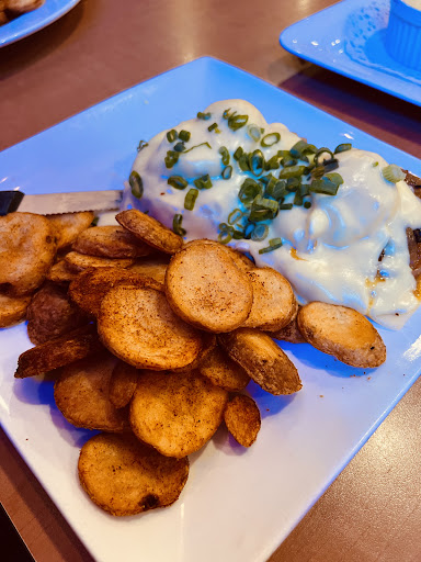 Anyways, everything started out fine, got seated quickly, ordered quickly and got my drinks (hot chocolate and water). Food came out in a timely manner, and this is where things go downhill. I had ordered an extra side of baked beans, and the cup they give is basically a tasting sample cup that would normally get condiments. It's absolutely minscule. The eggs benedict was ok except for 2 thingw, the 2 eggs they give you are tiny, they're almost quail sized eggs that could fit on a single english muffin. Also, they were slightly overcooked with a layer of cooked egg on the inside, and not a lot of runny yolk. It's not quite medium yet, but it's definitely overcooked for soft. I would attribute that to the eggs being small. The peameal was pretty large, the holllandaise was pretty good. The fries are ok, they're sprinkled with paprika i think, but that flavour doesn't come out at all. Its basically thick chips, and it's ok. They take up more than half the plate. I usually skip the potatoes if i can because i can't eat that much food when there's a main course.
