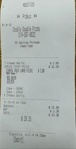 Terrible Food & even worse service.!!! We have been big fans of Double Double "s Chicken Wings for over 20 Yrs. Consider them to be underrated & love their hot sauce. We normally get them from the Kitchener location but a few times we ordered from this location , the quality was decent though the service was never the greatest. Ordered 50 Wings & Garlic bread tonight. The Garlic Bread was totally burned. The wings for the kids were also burned The Suicide Ones for us were not burned but they were so hard that it required a lot of force to get it separated from the bone & then it was like rubber. I had 4, My wife had 2 & my son had 2 & my daughter had a bit of the Garlic Bread slice. but then we could not have anymore as they tasted super nasty.so stopped. I did call them and a lady picked up the phone, listened to my complaint & put on on hold for a few minutes then came back & told me that she checked with the person who made them & the person said that the food was all fine but If we have the whole order with nothing consumed then we can bring it back & they will remake it. I told her that most of the stuff is here but We had to consume some to figure out how bad it was. She said then she cannot help me then & disconnected the call. This is definitely the last time this location is...