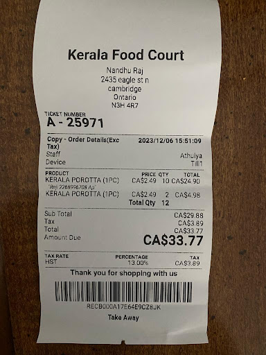 I recently visited Kerala Food Court at 2435 Eagle St N, Cambridge, ON, and had a mixed experience. We ordered the Mutton Biriyani, Porotta, and Chicken Curry.
