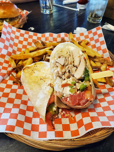 Read moreThe building is on the corner of a busy intersection. Parking in the back is recommended. If you park in front there's a ton of traffic you have to wait for to reverse into the live lane. Place was busy. Clean. We had a large party of 12. Server was very nice, attentive and quick. So the food was hit and miss I guess. All of us got fries with our food. They were dry as dust. Tasted like they were baked not fried. Had to douse them with vinegar to moisten them up. Not a spot of fry oil in the basket paper could be noticed. So the two wraps we got were just as dry as the fries. The chicken Caesar and the chicken brushetta. Both had no sauce hardly. Very very dry. Onion rings were delicious. The 2 burgers were a bacon cheeseburger and an All Jacked burger. The meat had zero seasoning. It was plain. Tasteless beef. The jalapeños were not hot at all and the sauce was bland. Zero flavor. There was other food from our table that I didn't get input on but you get the pattern here. Won't go back. The 2 stars was just because of the service and pop...