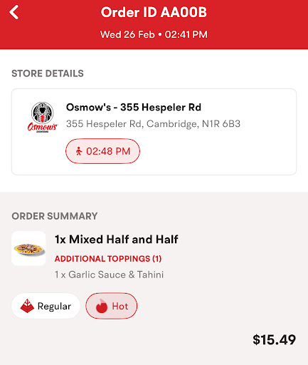 Read moreThis location is an unclean Osmows franchise place. I will never set foot to this unhygienic place again. I think they served old expired meat for my other delivery order which smelled bad. I did not even eat it. Don't want to get sick. I'm thinking of reporting this location for a food inspection and hygiene from the authorities.