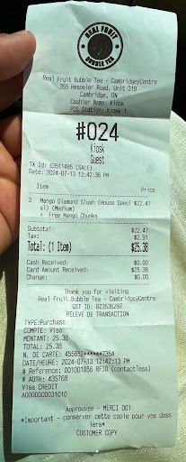 I shared experience with my other friends, they said they had the same experience of quantity of ingredients not being enough, mango diamond slush being watery.