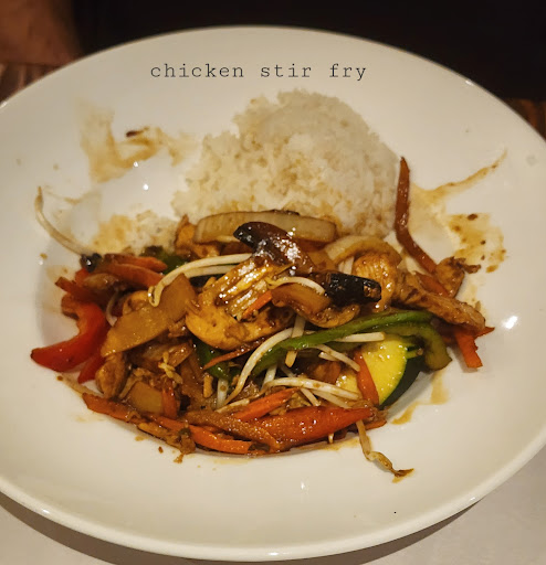 I had, being a strict vegan eater, with lots of extra intolerances: the vegetarian spring roll platter home-made green tea and vegetarian fried rice.