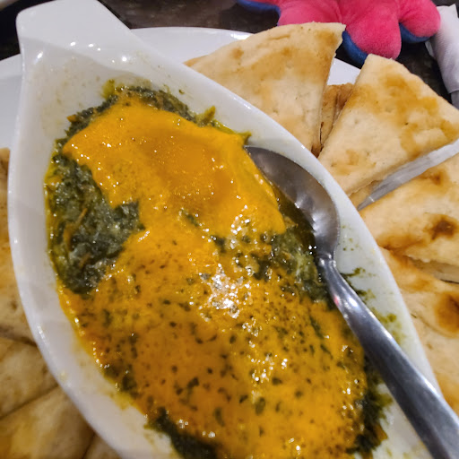 Spinach dip- just spinach baked with kraft single melted on top. Super greasy, underwhelming and weird to legit pay for kraft singles melted on top.Naan served with it was good at least.