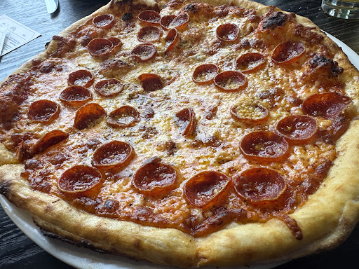 Brooklyn 99 pizza- great wood fired oven pizza, good char, nice firmness, great crust, tasty combination of cheeses with a nice pepperoni. 1 bite, everyone knows the rules 8.7. I would make this a regular pizza. One of the best pizzas in the region