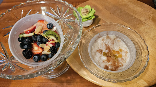 Another apology as they handed over the item. And inside was more, much more than anticipated. We were given a full order of fries instead of a side order. (Side note here -- Tony's has MASSIVE portions). We also received a side of some of the freshest fruit I've seen and another one of their famous rice puddings.