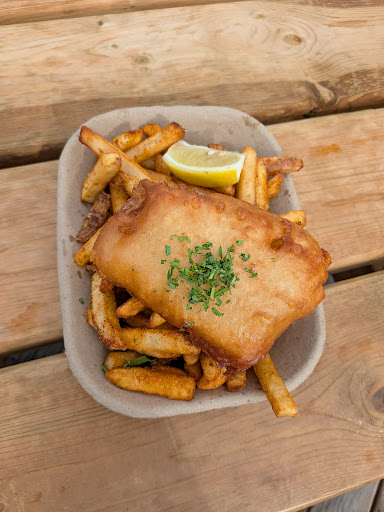 Read moreWe elected to skip the 1:30pm Quadra ferry so that we could check this place out. We were seated around 1:15 and placed drink orders (beers). At 1:30, we still didn't have any beer nor had our food order been taken. One of our party finally went in to inquire and we were able to put our food order in. At 1:45 we still did not have beer and sent someone to move our car/trailer to the 2:30 ferry line. At 2:00 we asked for our food to go (I will mention that at this time, a gentleman who sat down well after us was served HIS fish). We ate our fish and chips in the ferry line and they were some of the best I've had, but my goodness, the service was SLOW. I will also mention that the other couple we were traveling with had this same problem earlier in the month. It just should not take over 30 minutes to fry food and certainly not to open beers and deliver them to a table.