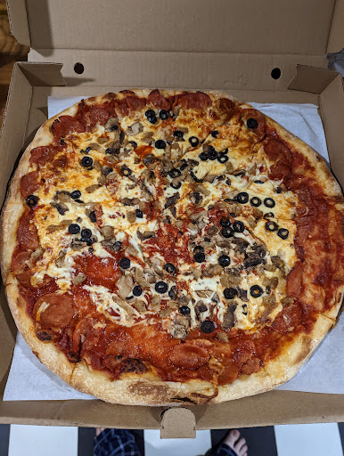 Read moreStaff are great. Friendly and welcoming. Pizza is not good unfortunately. We have ordered 3 large pizzas, vegetarian, pepperoni, and the works. The crust on all 3 was incredibly thin and flimsy, the cheese and toppings slid right off if picked up by the end of the slice. There were only 3 toppings on the vegetarian which seemed pretty light for that type of pizza. We didn't order any of the other menu items available so I can't speak to them. Unfortunately I can't...
