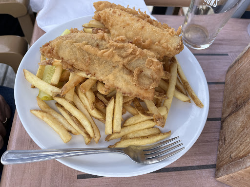 Read moreThere’s only very few places to eat on this island so be warned, it can be extremely busy on the summer weekends, here. We came on an extremely busy Friday night since the place was packed. I think they’re way under staffed in the kitchen as we waited around 1h20mins for our meals which was by far completely unacceptable. The meals were way overpriced for what you got, which is cafeteria quality at best, and what you get isn’t even cooked properly. We’re talking, completely burned burger and overcooked haddock. We would have sent it back but knowing how long it took and how hungry we were by then we just let it slide. The waitresses also need some more training as they never come around to see how your doing, how the food is or offer more drinks for the wait. You could tell they were all flustered with the crowd and completely unprepared. Even the one guy didn’t know how to handle all the extra people coming in actually turning other costumers away without initially giving them the option of a wait time. Not very nice or professional. Due to this, the vibe wasn’t quite right. Also, the restaurant floor was actually seriously dirty, like they can’t take the time to sweep or mop a spill under the table. Very disappointed in this place and the food....