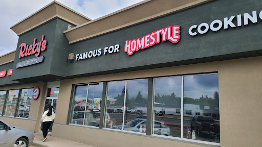 Read moreWe waited at least 10 minutes to be seated. People who came in behind us left. Once we got seated, the wait to get out drinks was unreasonable, and they tasted watered down. While we were waiting, an older couple was seated next to us, they waited over 10 minutes and still never had a waitress to come ask them what they'd like to drink, so they left (I don't blame them). I told our first waitress that and she said the other waitress must have "forgot", you do not use that as an excuse, if you "forget" about your customers get out of the restaurant industry or go work in McDonald's where you don't have to wait on customers. I have been to several Ricky's, they have ALL been amazing (especially the jasper location in edmonton). This one is a poor excuse, and literally the worst one I've ever been to. I will NOT be back!! The menu is half that of every other menu I've seen. We ordered the original burgers, mine wasn't supposed to have mustard, relish, pickles or tomato, it had pickles, yuck. I was supposed to get crispy skin on fries, I got curly fries, no gravy like I ordered, the waitress didn't even remember if I added bacon or not even though she asked when reading the order back. The other one wasn't supposed to have pickles, it had pickles, it's supposed to come with mustered, however it did not. The fries were cool and chewy, the burgers were dry, our drinks tasted watered down. We had 3 different people wait on us. This is the cheapest looking Ricky's I've been to, it looks like an after thought. It was freezing cold. The lack.of decor with almost white walls made it seem very unwelcoming. I'll wait to go to ricky in edmonton, I.will...