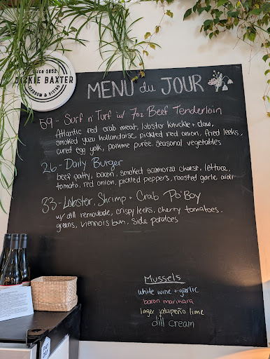 Read moreWe were staying just a few doors down at the Farmhouse Inn B&B, which recommended Dickie Baxter. We were going to drive several miles but decided to walk just a few hundred feet and we are so glad. The atmosphere was so cozy and the food was so delicious. We’ve been having the same style seafood for quite some time coming up through Maine and New Brunswick and then Nova Scotia. Their chef puts an amazing twist on many of the items. We had a fish, scallop, shrimp, lobster chowder that was so different so delightful, it was broth-based instead of cream based, I’ve never had the style before and was so delighted. We then had the seared sea scallops, which were so fresh, so beautifully seared and uniquely seasoned, they melted in your mouth. Bella, our server, so energetic and professional. When we came in for dinner, there was only about five or six people in the restaurant, within 30 minutes there was 40 to 50 people and even though she was working it by herself, she never became overwhelmed. Her energy and professionalism were absolutely amazing. for the size of the restaurant there were many wine choices for us to choose from. Bella recommended a couple of different types, a bubbly, a white and a red and they all were terrific. If you are in Canning or anywhere near Wolfsville, make a trip to Dixie Baxter, taproom and bistro you will not be...