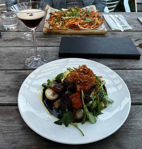 The ambiance is enhanced by the soft, ambient lighting and the gentle murmur of conversation, making it an ideal spot for both intimate dinners and lively gatherings. The outdoor patio, offering stunning views of the surrounding countryside, provides a serene dining option where guests can enjoy the beauty of nature while savoring their meal.