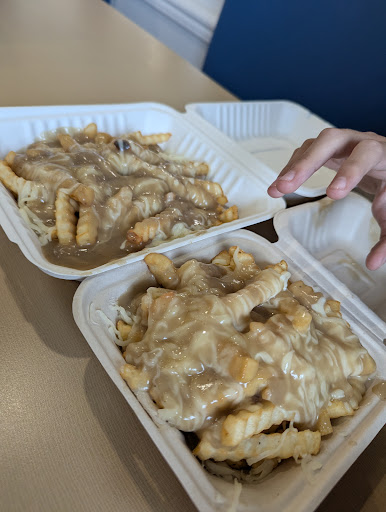 Unfortunately, the fries were undercooked. Given that they appeared to be prefried, they should have crisped up more quickly. The poutine sauce was mediocre, bordering on bland. The most disappointing part was the burger, which was extremely dry. It seemed as though it had been cooked the previous day and then reheated. I certainly would not recommend it.