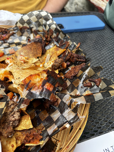 The food did not make up for it. The nachos were dry, served with processed chicken, with the smallest serving of mild salsa for a big plate. I got a burger and I was offered no condiments, so I waited and waited for the waitress so I could ask for one, and was just brought an entire bottle of Frenchâs mustard.