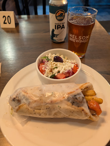 I ordered the Lamb Apo Ola, with a side of Greek salad, and a locally sourced, from Tailout Brewing, can of IPA. First of all, a chilled glass instead of a room temperature glass would have been nice, but not a deal breaker. The only reason they don't get a 5th star is because it's a little pricey for what you get, what isn't these days, and the tomatoes were mushy so the salad was not that great. Again, I don't really fault the restaurant for this, after all, I myself have brought home mushy tomatoes from the grocery store. The gyro, however, absolutely beautiful! The lamb was cooked to perfection, packed with flavor, and even had a little tiny bit of kick to it. The mushy tomatoes couldn't even ruin this masterpiece! I just wish that they had Greek roasted potatoes on a regular basis as it's only on special days, that's usually my go to side dish at any Greek restaurant.