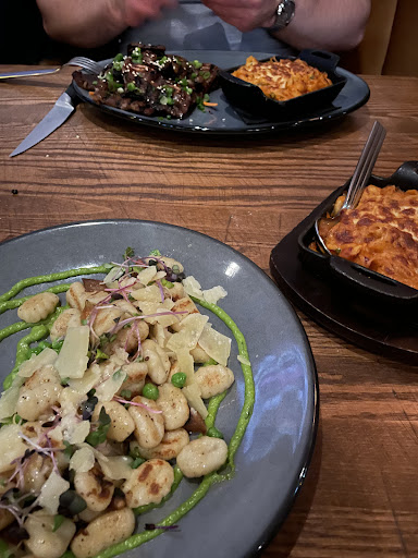 I got the Gnocchi with a side of the kimchi Mac and cheese and an order of the beer battered onion rings. The gnocchi was good, the pearl onions were awesome but I did wish it had more of a sauce, that being said with all we ordered it was nice to have a âlightâ dish. It felt like a healthy gnocchi. Clean and simple flavour thatâs anything but basic. Kimchi Mac and Cheese was everything I wanted it to be. Creamy with a punch of flavour, nothing too hot just enough to make you finish every bite. My favourite was the beer battered onion rings. So crispy and addicting. I canât believe this is true but they were even good when I went digging through my left overs the next day đ I know who eats day old onion rings but they were sooooo good. It blew my mind.