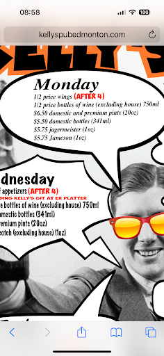 Read moreAtmosphere is good; it is a cool pub. We had gone there once before and everything went decently well. It took a while to order but it was packed in there and so it was understandable. We then decided to go there again tonight and thought we would sit on the patio because it was open and it was a nice night. We waited 10-15 minutes out there with no service or acknowledgement. A server served food to the table 4 feet away from us and saw us but never came back nor did we get acknowledged. We thought we would go inside to see if our luck was better and sat there for another 15 minutes without anyone even acknowledging us. There were maybe 10 tables inside and 3 outside. We walked out and the server said sorry that she was the only server. Firstly, a single server at a bar on a Saturday night at 9pm downtown Edmonton is crazy, especially if you have the patio open and considering most places won’t be busy until an hour later; we also saw another server doing side duties maybe 15 feet away. Furthermore, an acknowledgement by a staff member would have been appreciated and we would have been happy to wait. Instead we sat without anyone even looking at us, even after moving to a table inside right in front of the bar. The server doing side duties had helped tables outside and inside but also failed again to acknowledge us in anyway. I had heard good things about Kelly’s and enjoyed the last visit, but after this experience I will...