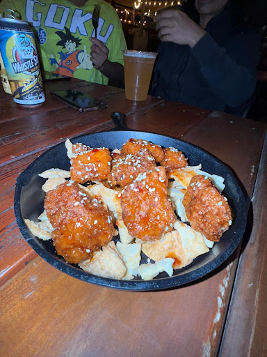 We ordered the Perch fish and chips and Thai chicken bites. The Thai chicken bites turned out to be nothing more than popcorn chicken with some honey sauce. One of the dishes came with coleslaw that had completely gone bad, it smelled awful and should never have been served.