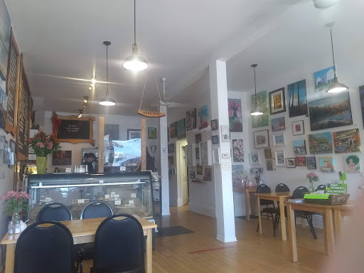 Plenty of art on the wall for purchase as well as ceramic pieces in the window. There was some outdoor seating. Great place to watch the...