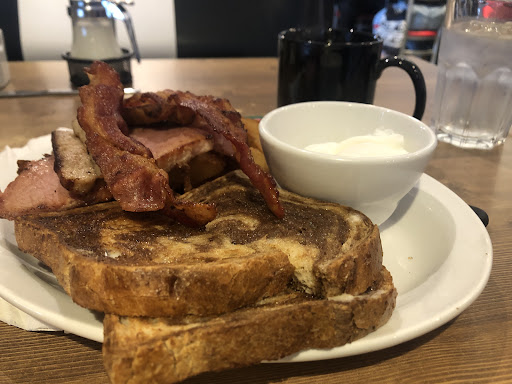 Thankfully the White Spot at Pat Bat & Mt. Newton wasnât open until 11:00 (what WS does that? Staff shortage maybe.) Forlorn in the parking lot, we searched the internet for "breakfast near me" & headed for this place. We were so glad we did. Classic, homey diner atmosphere. Felt like we were in the States where diners are an art. Only thing missing was the server doesnât call you "Hon". Menu is massive, which can be worrisome cuz a cook can only do so much well. But everything seems to be a variation of the same ingredients, with simple variations & adds. All-in-all itâs creative & wholesome food. Hubs had the equivalent of a Nat's special, & he reported it was better. I had the 1/2 deli ham Benny which was good, but I should have got the full as was pretty small & to get double the amount for a couple dollars more would have been a better deal. What makes this place really good is the obvious use of fresh foodâŚ.nothing seemed from frozen. Like from Mom's kitchen. I had to add more salt & squeeze the orange slice garnish on the hollandaise to zip up the flavour (could have used more lemon). Hence no 5th star. Great service with smiles. Food came quickly & coffee refills prompt. Seemed like lots of regulars in there that servers knew by name. The worst thing about the experience was the ride home. Hubs kept repeating, "That was a great meal." until I told him Iâd already heard him the 20th time. Guess we'll be...